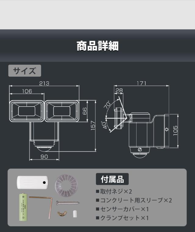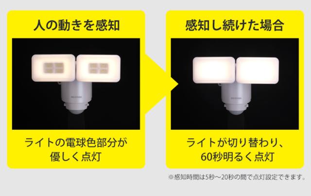 センサーが人の動きを検知して自動的に点灯するLED防犯センサーライトです。