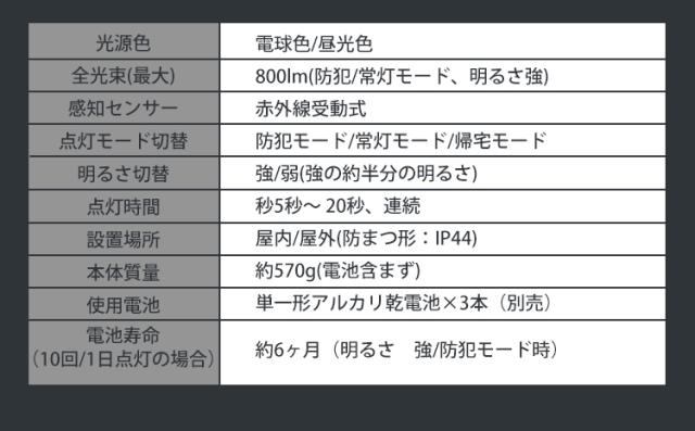 センサーライト 屋外 LED 人感センサー アイリスオーヤマ 乾電池式LED防犯センサーライト LSL-B1TN-800 パールホワイト 防水 防塵 玄関ライト 防犯ライト センサーライト 防犯 玄関 ライト LED