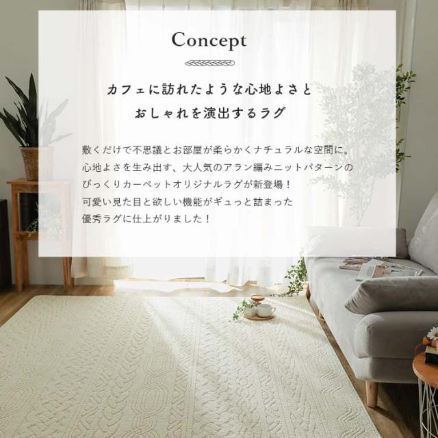 | 日本製 ニット風編み模様ラグ サイズバリエーション | ||