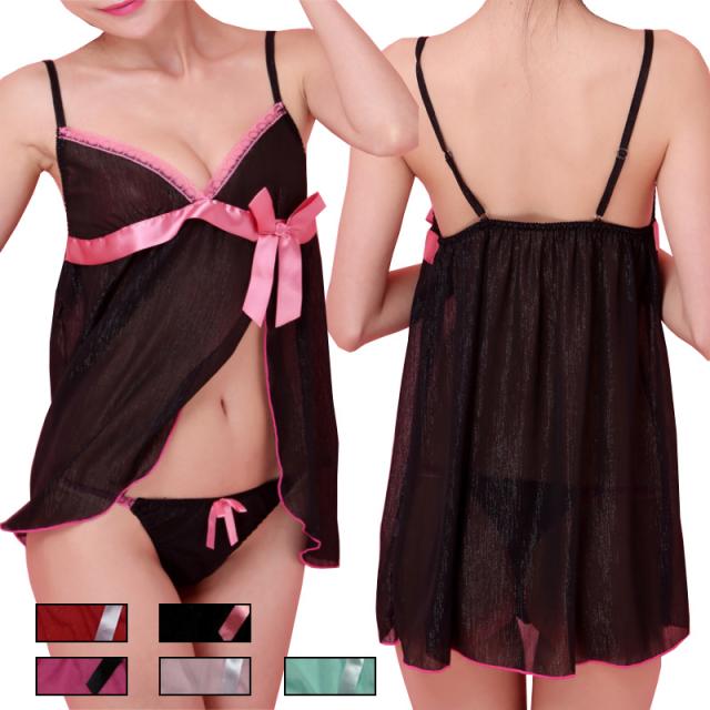 ベビードール Tバック ショーツ セット ベビードール&Tバックショーツ ラメ ビックリボン M L セクシー ランジェリー ナイティ ナイトウェア ルームウェア 部屋着 レディース 女性 下着 メール便送料無料