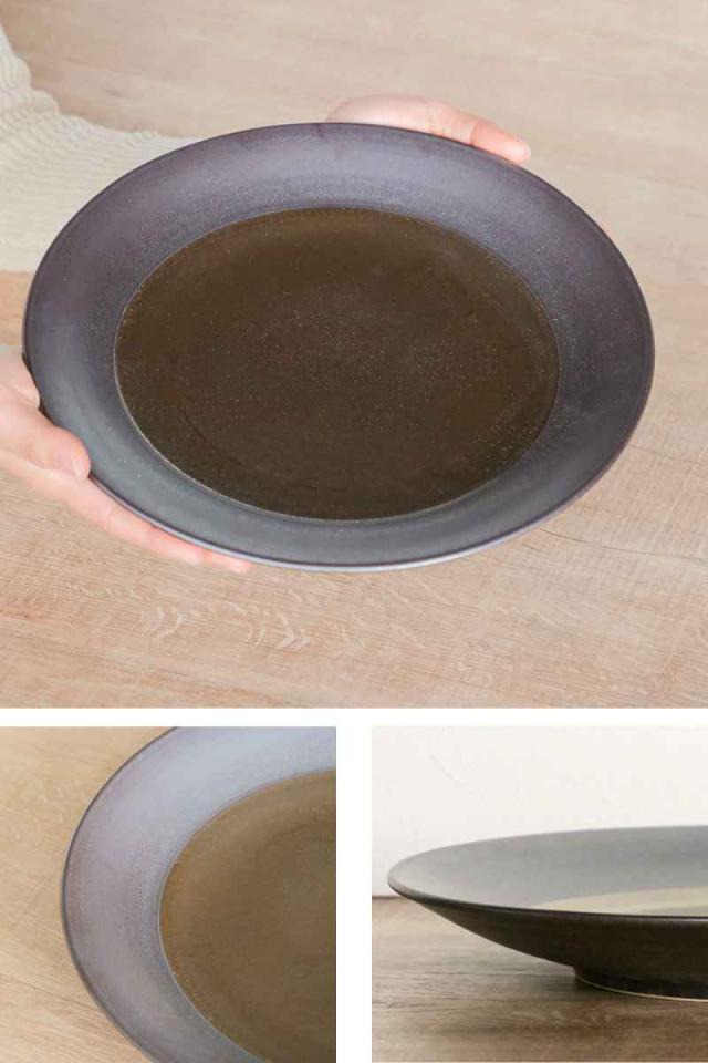 ブロンズのような質感の鈍いゴールドに、フチをマットなブラックで引き締めたプレートです。何を乗せてもサマになり、食卓に高級感をプラスしてくれます。メイン料理と一緒にサラダや前菜を盛り付け一人分のワンプレートに、ホームパーティーでシェアする大皿料理にと幅広くお使い頂けます。