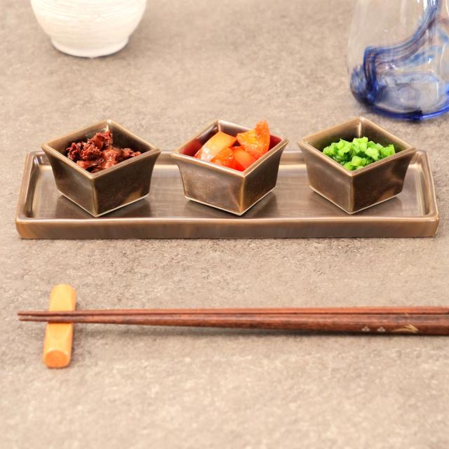 同シリーズ別売りの角皿に角珍味を3つ並べて乗せることができ、より特別な雰囲気を楽しむことができます。