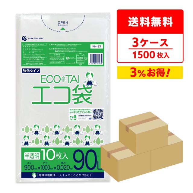 ポリ袋 ゴミ袋 90リットル 薄手 半透明 90x100cm 0.020mm厚 10枚x50冊x3箱 KN-93-3 /ごみ袋 袋 90l ナチュラル 送料無料