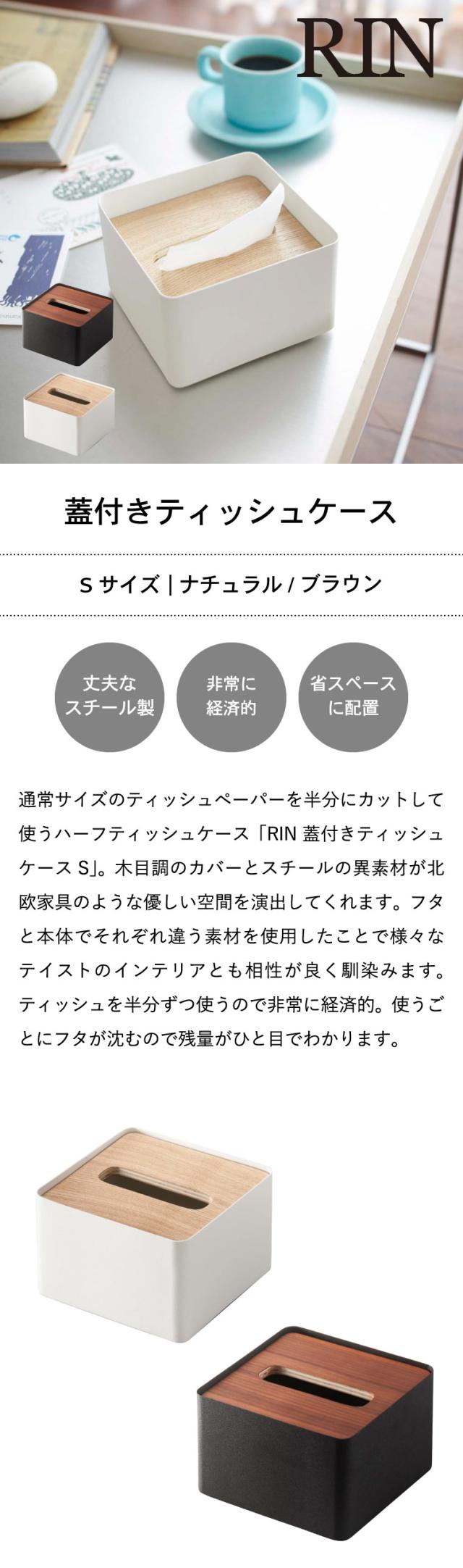 RIN 山崎実業 リン 蓋付きティッシュケース S ブラウン ナチュラル 7731 7732 送料無料 ハーフサイズティッシュ ナチュラル ティッシュカバー 誕生日プレゼント