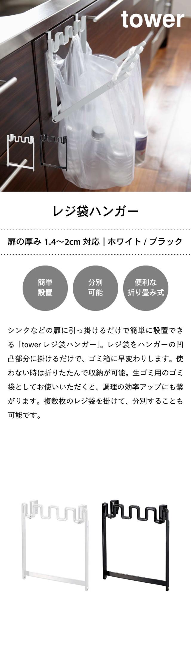 tower 山崎実業 タワー ゴミ箱 レジ袋ハンガー ホワイト ブラック 7133 7134 送料無料 ゴミ箱 キッチン 分別 レジ袋 ビニール袋 レジ袋ハンガー 誕生日プレゼント
