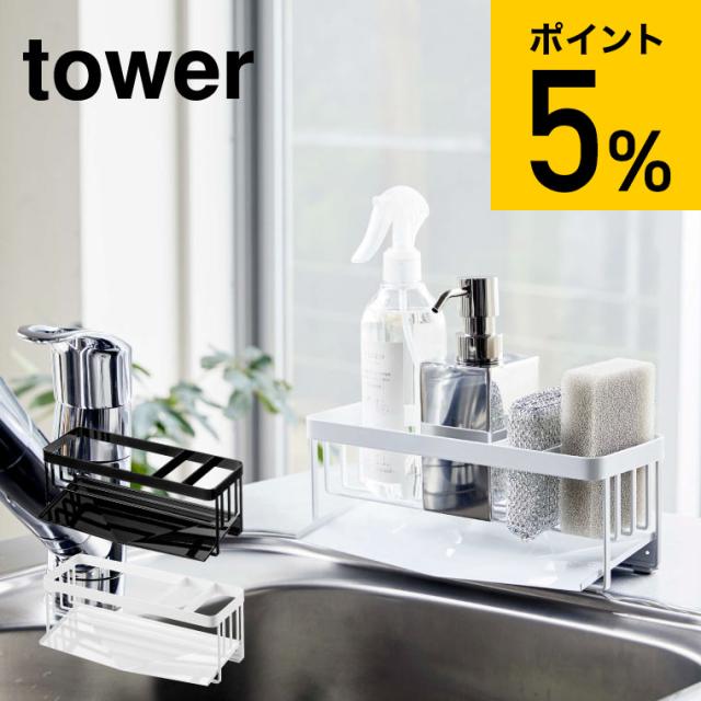 tower 山崎実業 タワー 水が流れるスポンジ&ボトルホルダー ホワイト ブラック 5016 5017 スポンジホルダー ボトルホルダー 誕生日プレゼント
