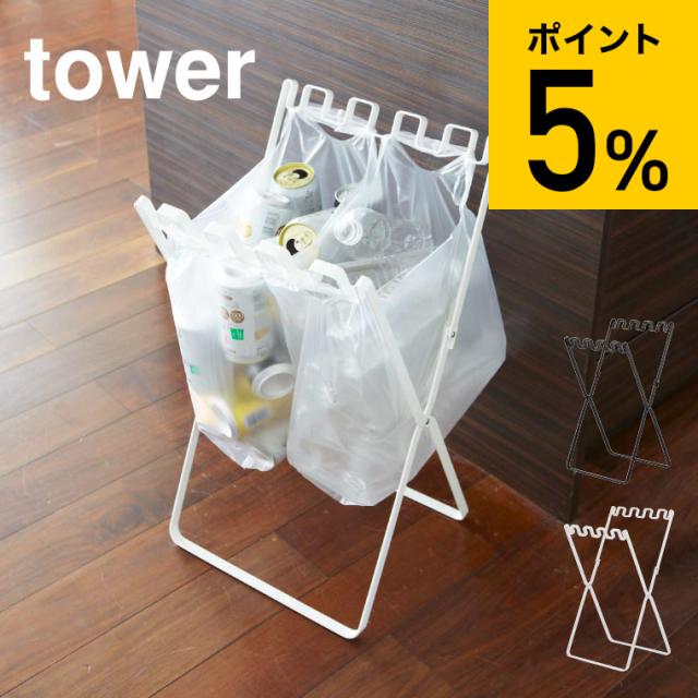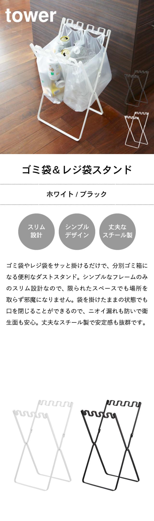tower 山崎実業 送料無料 タワー ゴミ箱 ゴミ袋&レジ袋スタンド ホワイト ブラック 7908 7909 簡易ゴミ箱 キッチン 分別 レジ袋スタンド 誕生日プレゼント