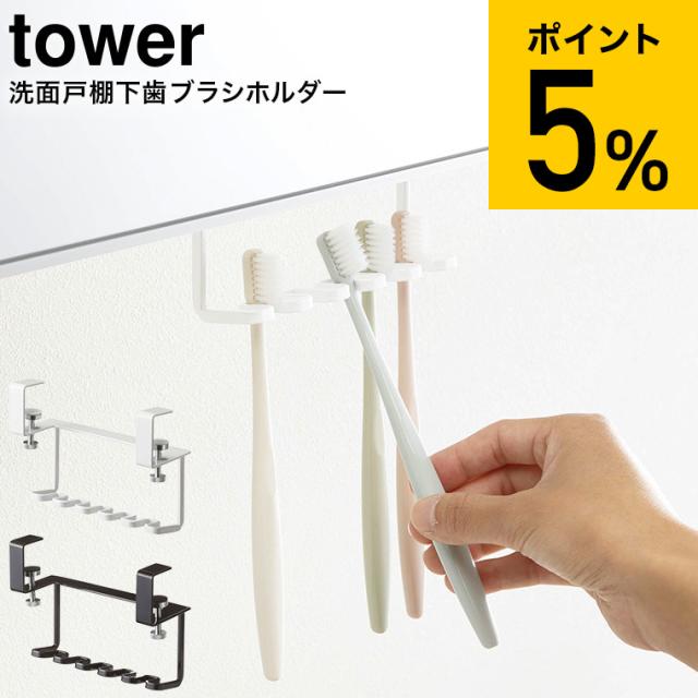 tower 山崎実業 タワー 洗面戸棚下歯ブラシホルダー ホワイト ブラック 5006 5007下げ 収納 吊り戸棚 吊り下げ 収納 歯ブラシ立て 誕生日プレゼント