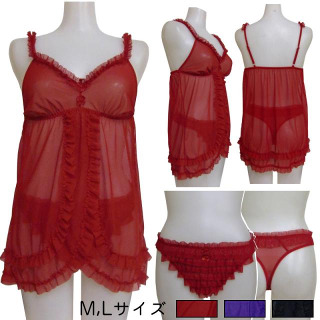 ベビードール Tバック ショーツ セット M L セクシー ネット地 透け シースルー ランジェリー レディース 女性 ナイトウェア 部屋着 ルームウェア パジャマ メール便送料無料
