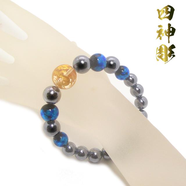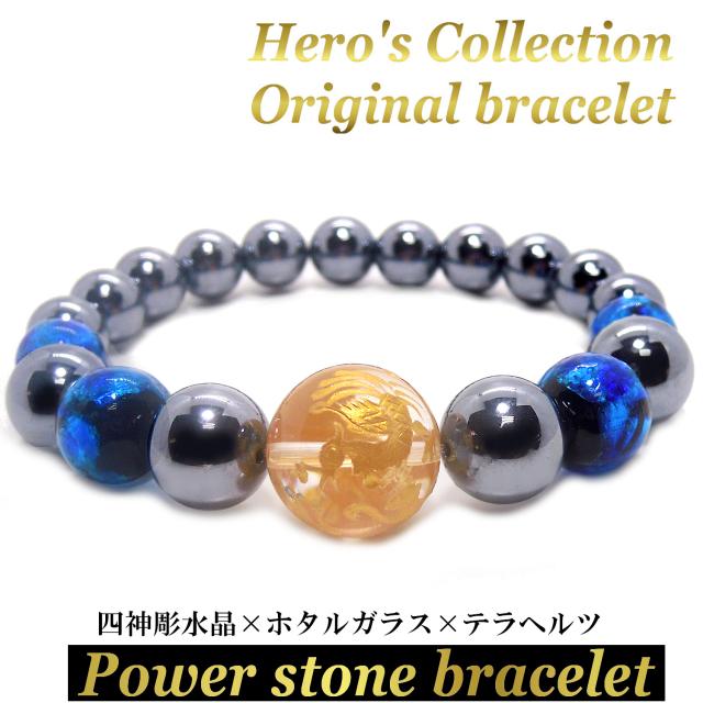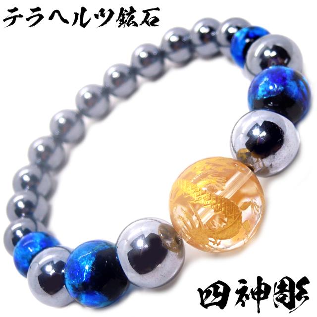 【送料無料】 金彫四神 水晶 16mm ホタルガラス テラヘルツ 鉱石 パワー ストーン ブレスレット 内周17.5cm メンズ ブレスレット 贈り物 ジュエリー アクセサリー 沖縄