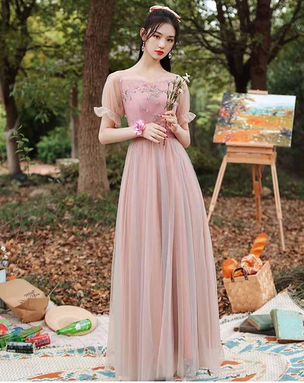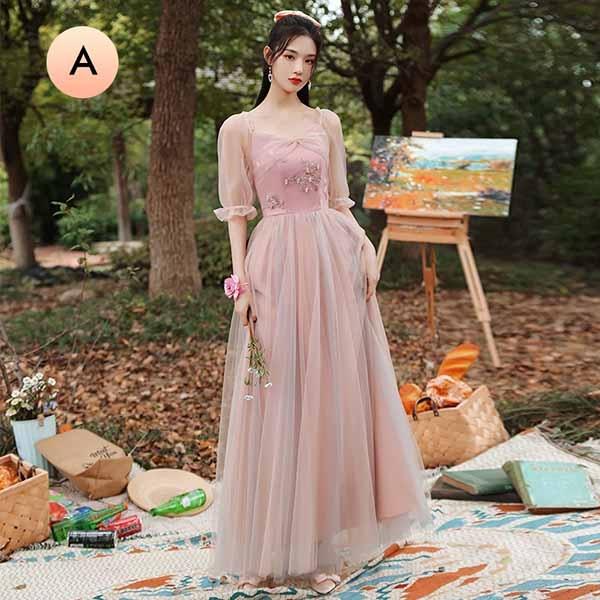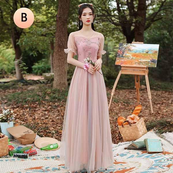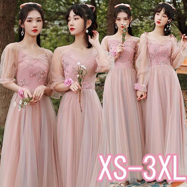 ブライズメイド ドレス ブライズメイド ロングドレス ピアノ 発表会 ドレス ロング丈 ピンク 大きいサイズ 袖付き 二次会 大きいサイズ 結婚式 体型カバー 半袖 フリル オフショルダー 謝恩会 二次会 卒業式 花嫁 演奏会 20代 30代 dw180ze