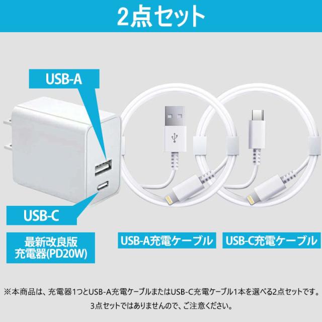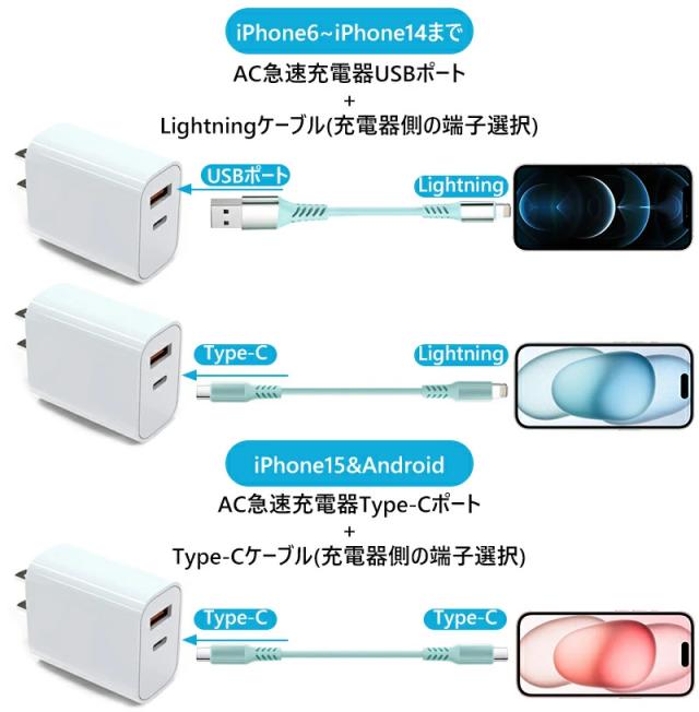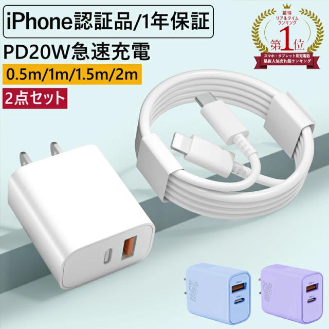 \ランキング1位★2点セット/【30分最大60%まで充電】iphone 急速充電器 ケーブル セット 20W 急速充電器 2ポート iphone 充電 コード 純正 タイプCケーブル 1m 2m pd充電器 PD対応 ACアダプター iphone16充電器