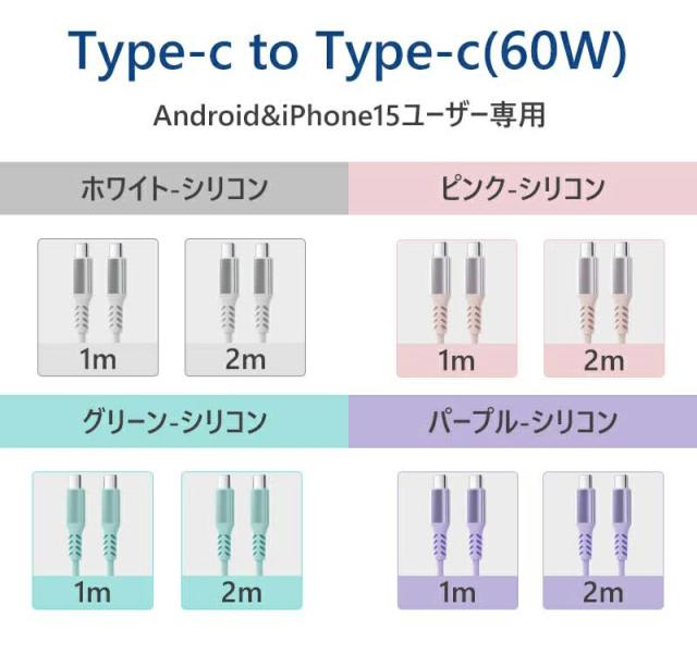 素材:アルミ合金、TPE、シリコン素材 サイズ:1m、1.5m、2m カラー:ホワイト、ブラック、ピンク、グリーン、パープル 対応機種: iphone各種、iPad各種、 Apple Watch各種(別途専用充電ケーブル必要)、 Switch、その他【対応機種】