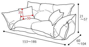 [外寸]幅153.0〜186.0×奥60.0〜104.0×高21.0〜57.0cm