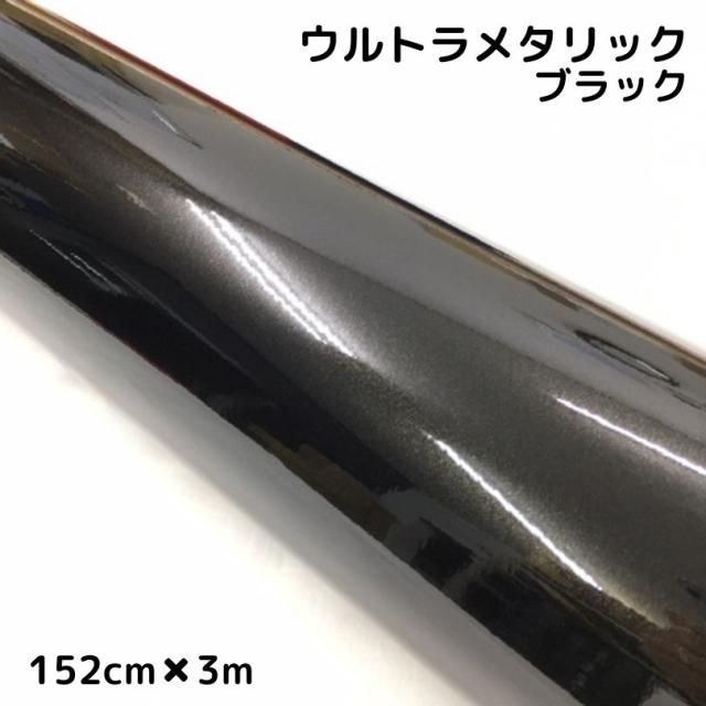 カーラッピングシートウルトラブリットメタリックブラック152cm×3m カーラッピングフィルム 耐熱耐水曲面対応裏溝付 艶ありメタリック黒 保護フィルム付