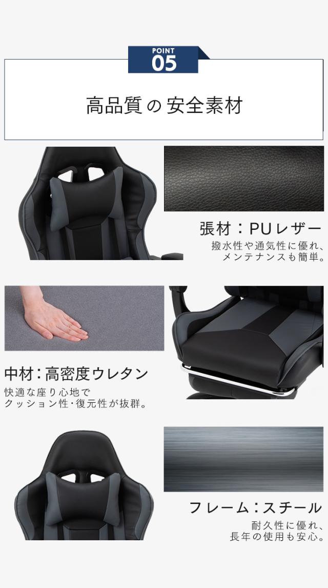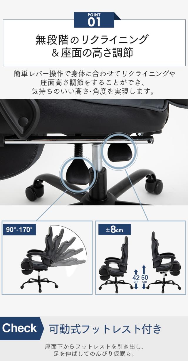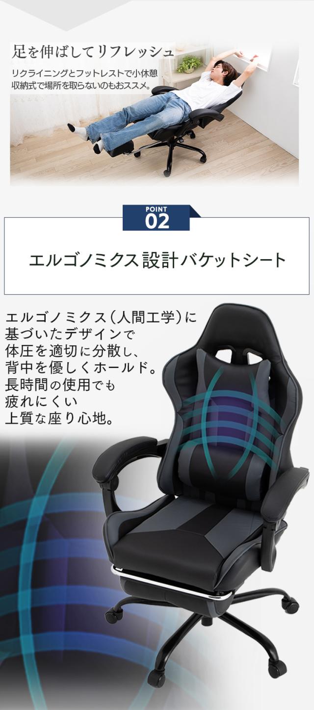 ゲーミングチェア GMC-71 全3色 ゲーミングチェア オフィスチェア デスクチェア ハイバックチェア ハイバック チェア ゲーム デスクワーク テレワーク リクライニング フットレスト アームレスト 高さ調整 送料無料