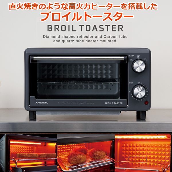 ブロイルトースター (オーブントースター 高火力トースター 遠赤外線効果 パン焼き器 1200W 遠赤 トースト2枚焼き あぶり焼き 高火力)