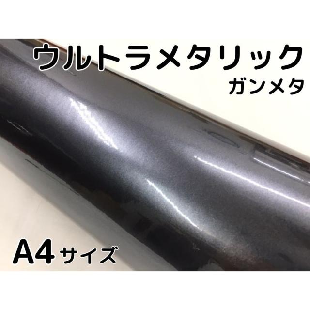 カーラッピングシートウルトラブリットメタリック ガンメタリックシルバーA4サイズ カーラッピングフィルム 耐熱耐水曲面対応裏溝付 艶あり 保護フィルム付