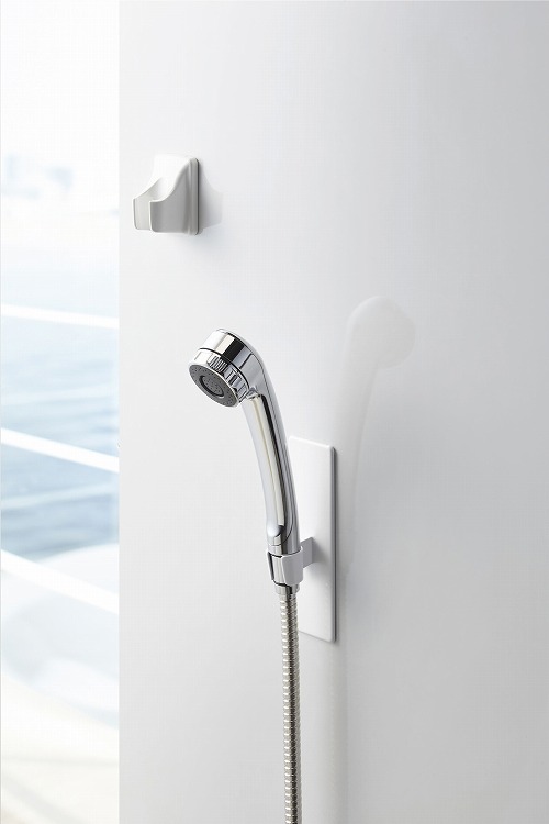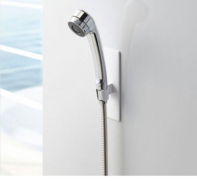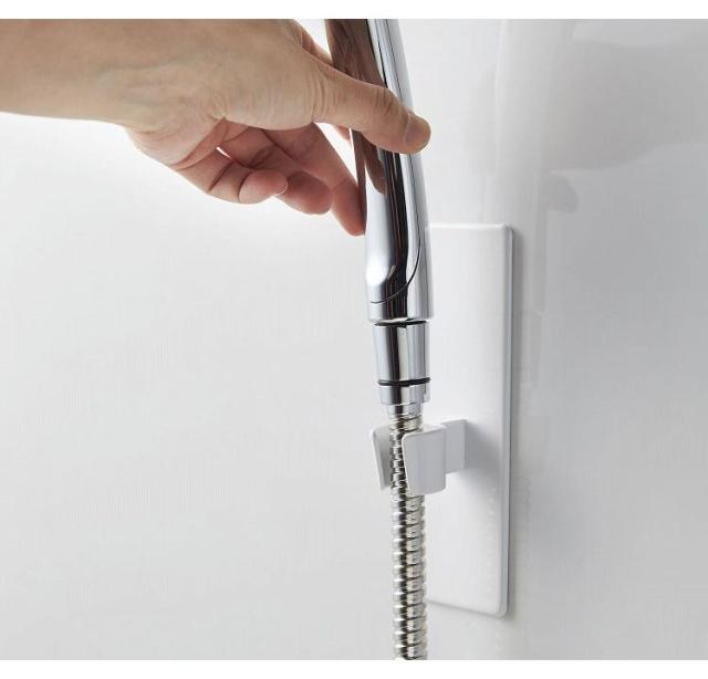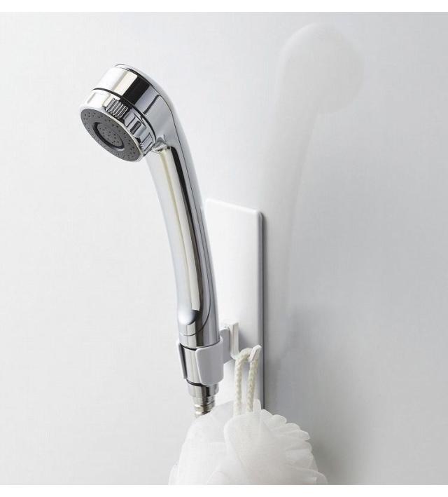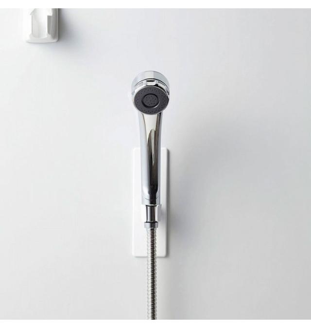 マグネットが付く浴室壁面に簡単取り付けのシャワーフック。マグネットで好きな位置に設置できるシャワーフック。