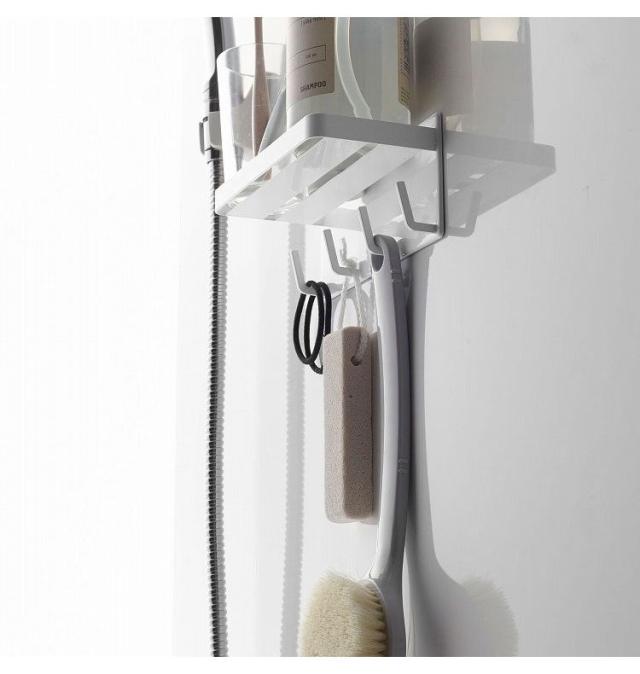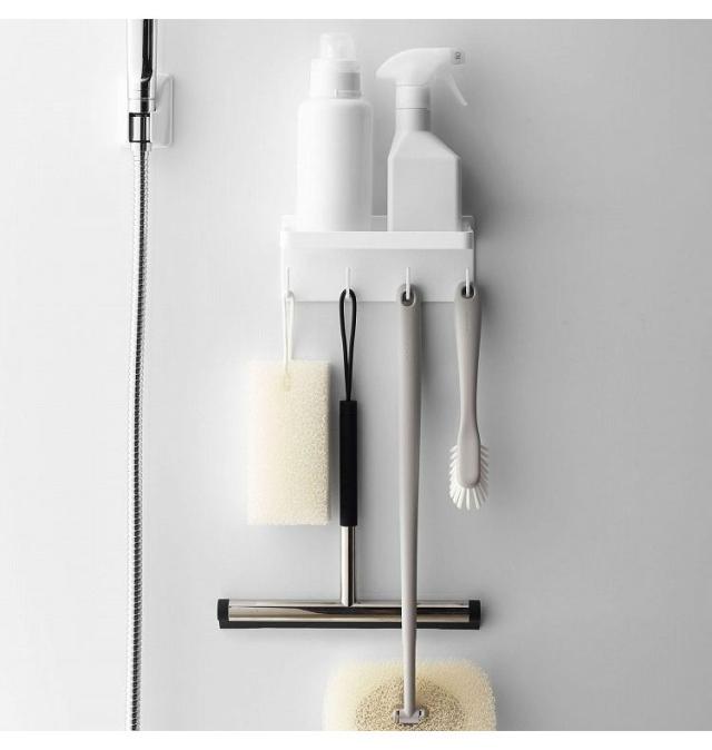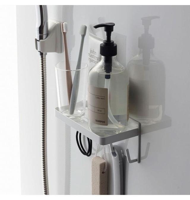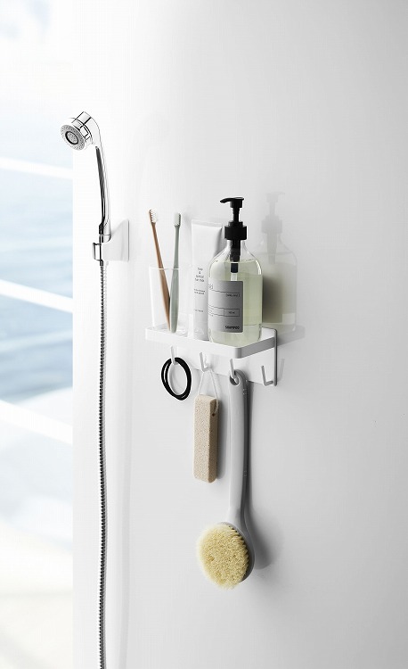 マグネットが付く浴室壁面に簡単取り付けのラック&フック。