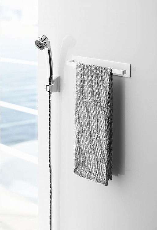 マグネットが付く浴室壁面に簡単取り付けのタオルハンガー。