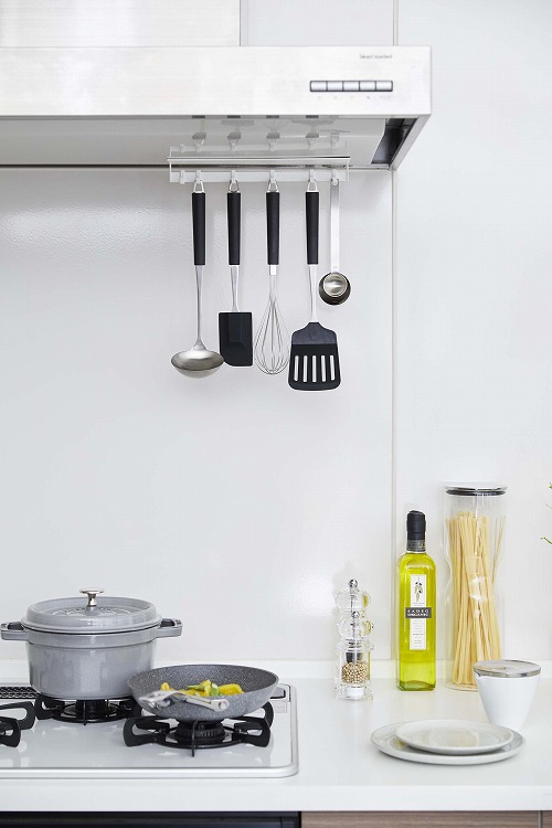 調理道具・鍋つかみ・計量スプーンなど、よく使うキッチンツールを掛けておくのに便利!