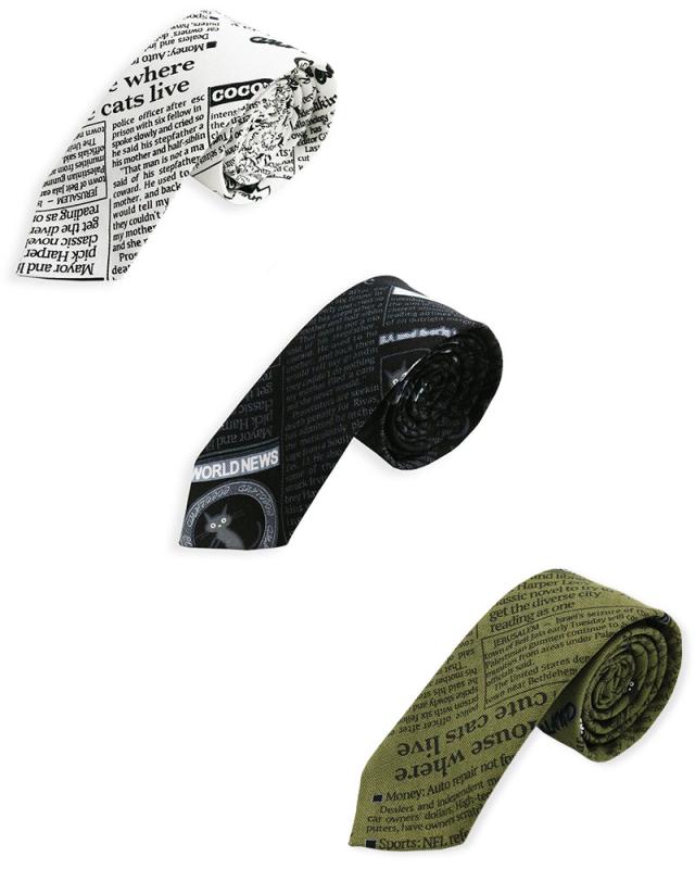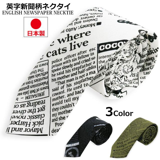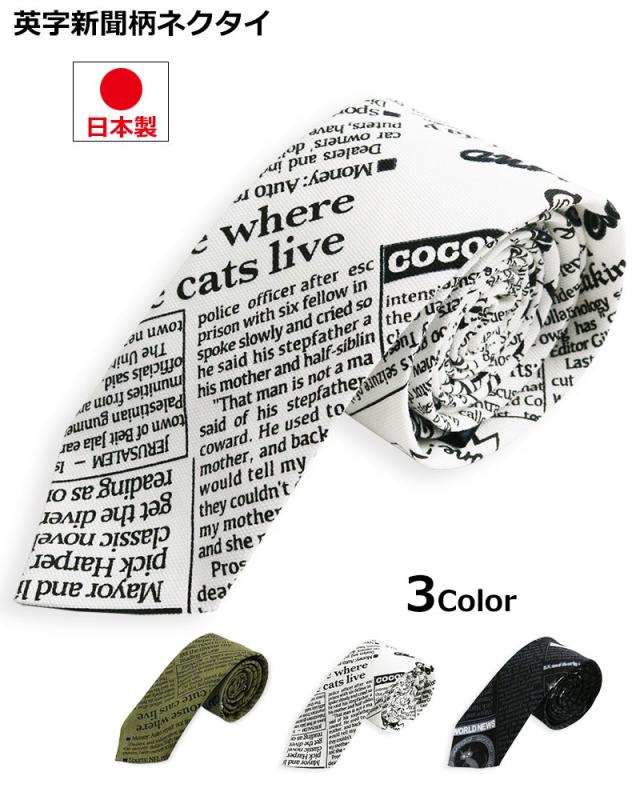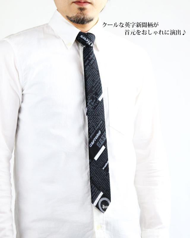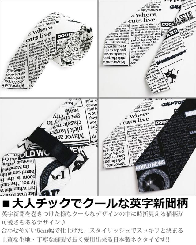 英字新聞柄 ネクタイ 日本製 6cm幅 細め ナロータイ 紳士 メンズ 猫柄 英字 ビジネス ユニフォーム スリムタイ ネクタイ