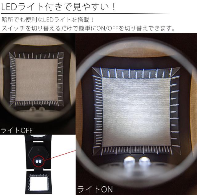 折りたたみ式 ルーペ 縞見ルーペ リネンテスター 倍率 8倍 LEDライト コンパクト 目盛り 携帯 収納ケース 付き 検査 検品 測定 拡大鏡