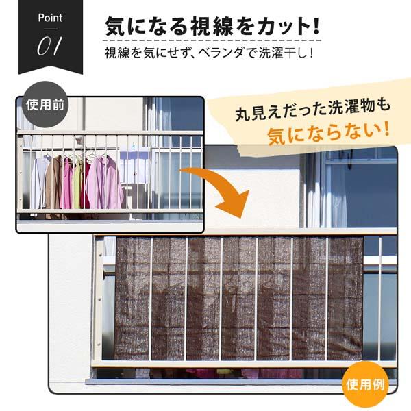 ベランダの目隠しシート 90×180cm 1009255 ブラウン メッシュ生地 すだれ 視線カット 日除け 日よけ 低層階 戸建て 柵 フェンス 桟