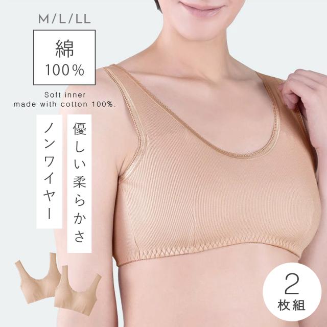 ブラジャー,ノンワイヤー,ノンワイヤーブラ,ホックなし,ブラ,タンクトップブラ,ソフトブラ,ナイトブラ,リラックスブラ,スポーツブラ,綿100,綿,コットン,セット,2枚組,肩,幅広,かぶる,リブ編み,ベージュ,ストレッチ,伸縮,伸びる,フィット,締め付けない,しめつけない,締めつけない,きつくない,痛くない,ズレない,ずれない,ズレにくい,ずれにくい,楽,らく,ラク,楽ちん,寝る時用,就寝用,就寝時,夜用,春,夏,秋,冬,オールシーズン,M,L,LL,大きいサイズ,ゆったり,背中スッキリ,やわらかい,柔らかい,ソフト,肌触り,ソフトタッチ,快適,心地よい,普段使い,デイリーユース,おすすめ,素材,生地,気持ちいい,洗い替え,大人,大人用,レディース,女性,女性用,婦人用,ミセス,ウィメンズ,婦人,お年寄り,高齢者,シニア,入院,20代,30代,40代,50代,60代,70代