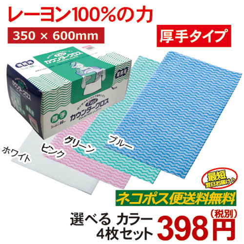 最短翌日お届け ネコポス発送 送料無料 選べるカラー4色 FUJI フジカウンタークロス 厚手 4枚セット 使い捨てふきん レーヨン100% 不織布クロス キッチンクロス クロス ウエス ワイパー キッチンペーパー ふきん ぞうきん お試し 小ロット