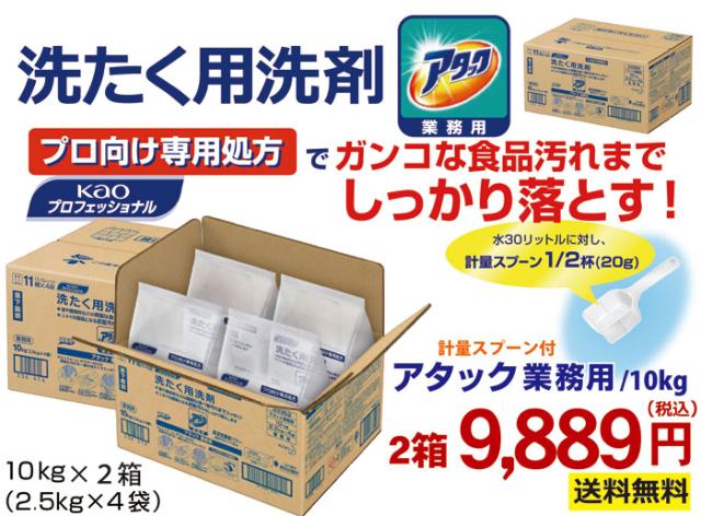【翌日お届け あす配対応】 お得な 2箱セット 花王 アタック 業務用 10kg×2箱(2.5kg×4袋×2箱)粉末衣料用洗剤 衣料用洗濯洗剤 洗濯洗剤 業務用