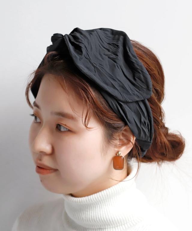 ふんわりしたシワ感が、カジュアルな印象を与えてくれるヘアターバン。