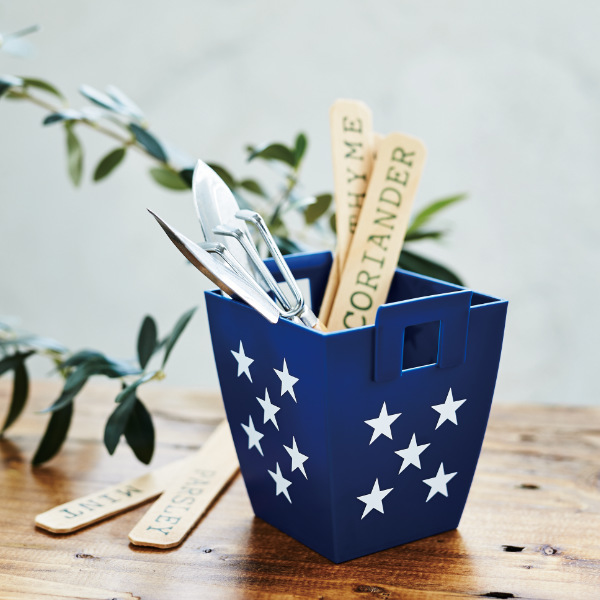 散りばめられた星がポップな印象のバスケットです。ごちゃつきやすい小物類を入れるだけでざっくり収納できて見た目もスッキリします。