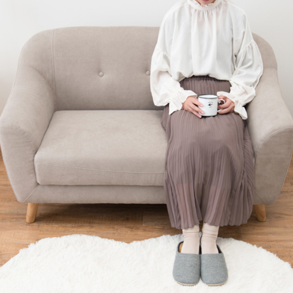 コンパクトでありながら座面は広々としているのでゆったりと座ることができます。包み込まれるような優しいデザインでほっこりと過ごせます。スマホやテレビを見るときにもちょうど良い高さの肘掛け付きです。
