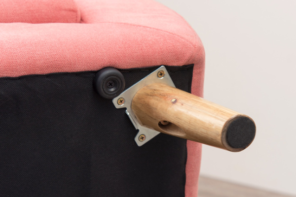脚底には傷防止のフェルトが付いています。脚は付属の六角レンチで取り外し可能で、ローソファとして使うこともできます。床と座面が近くなることでリラックス感UP。圧迫感も減りお部屋も広く見せることができます。ローソファ用の脚も付いているので床の傷を防止します。