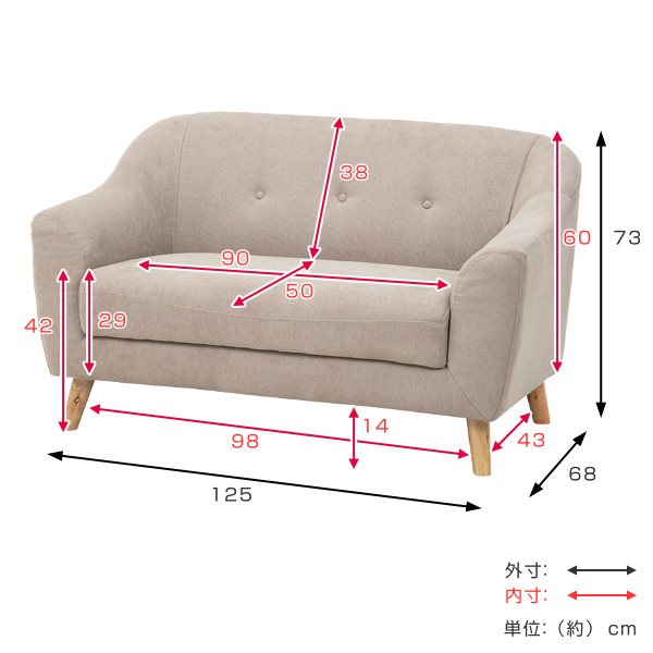 ソファ 幅125cm 2人掛け コンパクト 小さい かわいい 肘掛 脚付き ローソファ ( ソファー フロアソファ リビングソファ 脚 取り外し 1人掛け 幅 125 1人用 リビング 肘付き アームソファ 子ども 子供 部屋 ワンルーム )