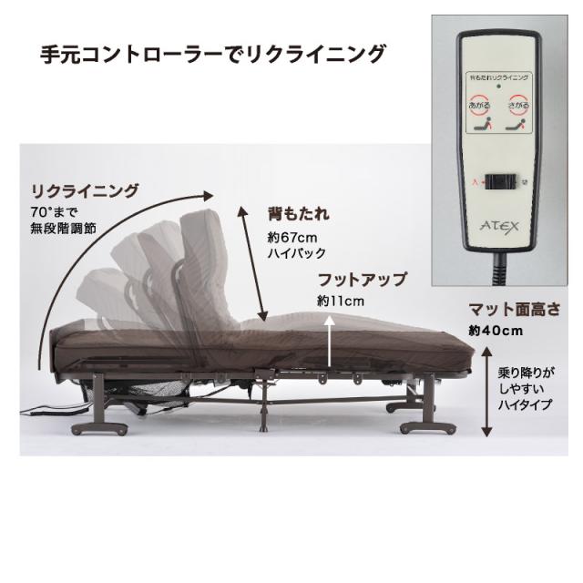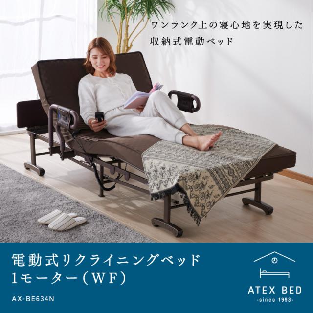 【公式】収納式電動リクライニングベッド Wファンクション 1モーター AX-BE634N 折りたたみベッド リクライニングベッド 電動ベッド ベッド シングル やわらかめ 一体型 アテックス 介護ベッド(介護保険適用外)グリップ付 送料無料 沖縄・離島追加請求あり おうち時間 2026