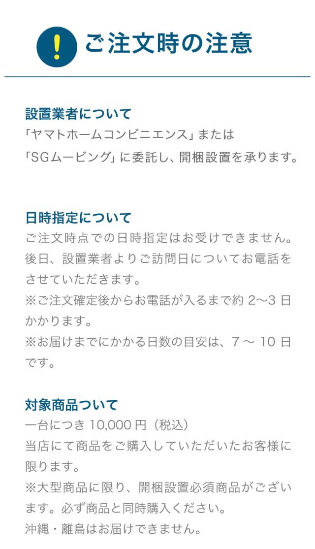 開梱設置サービス 沖縄・離島不可