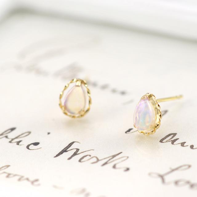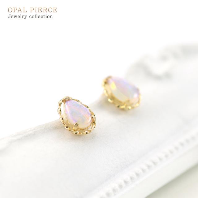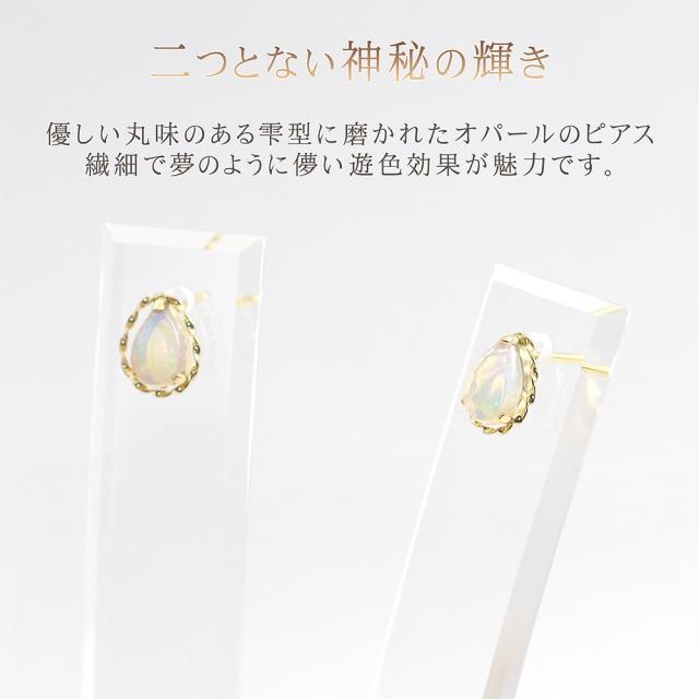 オパール ピアス レディース シンプル 18金 イエローゴールド 10月 誕生石 スタッドピアス K18 アクセサリー 18K ジュエリー プレゼント 誕生日 記念日 贈り物 ギフト ティアドロップ 雫 涙型 小さい 小ぶり 本物 女性 彼女 嫁 ホワイトデー お返し