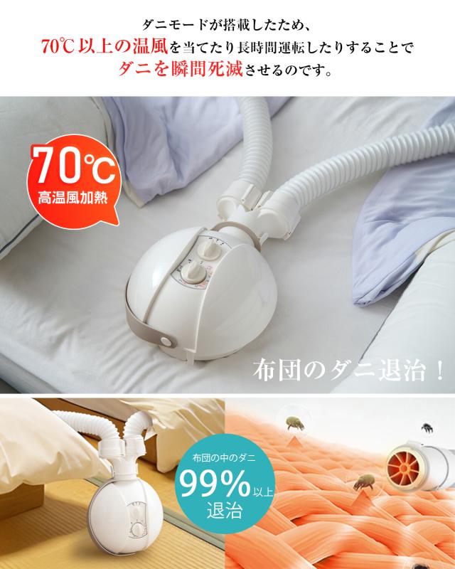 - この布団乾燥機は、軽くて風量があるので使いやすいです。靴用のアタッチメントを使用すると靴の乾燥にも使えるのが便利なので気に入っています。