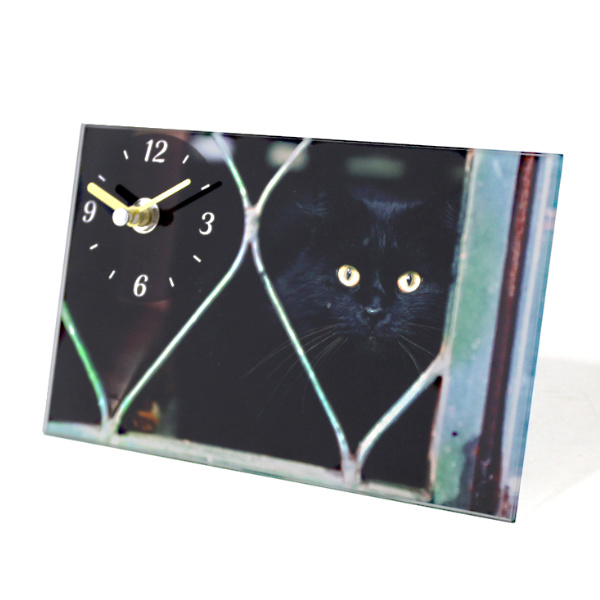 ●かわいい犬や猫の写真がガラスにプリントされたデスククロックです。