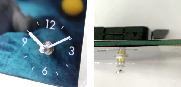 犬や猫の写真がガラスにプリントされたデスククロック