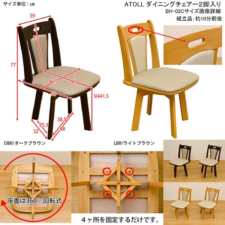 ATOLL回転式ダイニングチェア(2脚入り) DBR/LBR