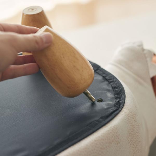 脚には床を傷つけないように保護フェルトを施しています。ボルトをクルクル回すだけで簡単に付け外しができます。