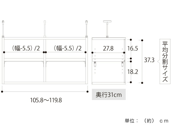 ![]() 幅106-120cm 奥行き31cm |