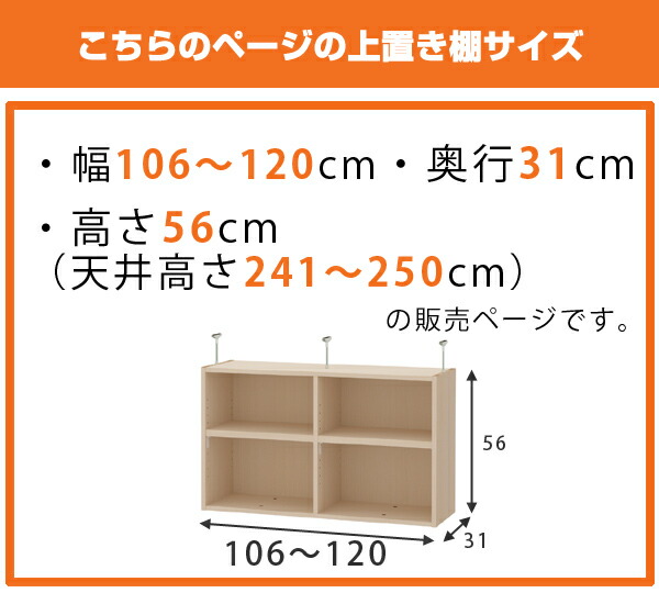 上置き棚 高さ56cm ワイドタイプ用 幅106-120cm 奥行き31cm 対応 ( 天井高さ241-250cm オーダー本棚 収納棚 Type56 ブックシェルフ リビング収納 漫画収納 子供部屋 オーダーメイド 国産 フリーラック 書棚 本棚 オーダー 書庫 )