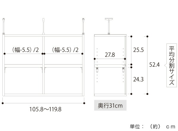 | サイズ | 約 幅106〜120×奥行31×高さ56(cm) |