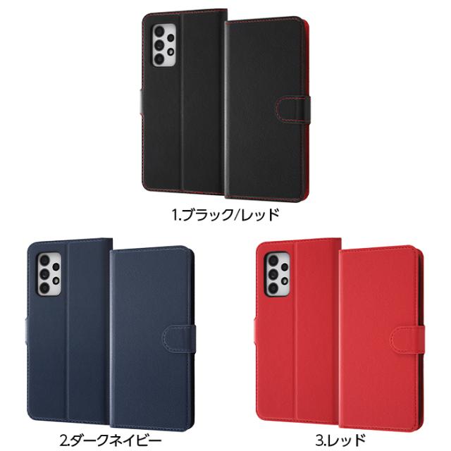 Galaxy A52 5G ケース カバー 無地 ブラック ネイビー レッド 手帳型 レザー 革 保護 マグネット シンプル ポケット ベルト 軽い SC-53B ギャラクシー