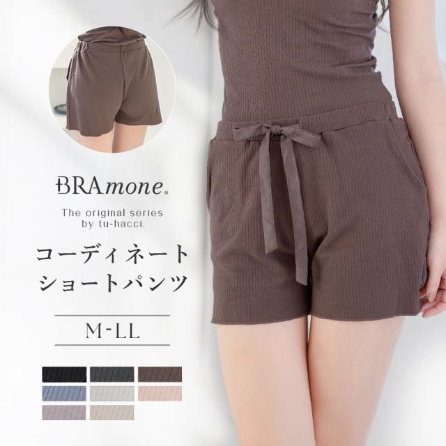 【楽盛りブラトップお揃いショートパンツ】ルームウェア ショートパンツ ブラモネ リブレース リブ浅V型 お揃い ルームウェア パジャマ 部屋着 レディース ポケット付き 綿混 短パン カップ付きインナー キャミソール セットアップ ショートパンツ単品 ツーハッチ tu-hacci
